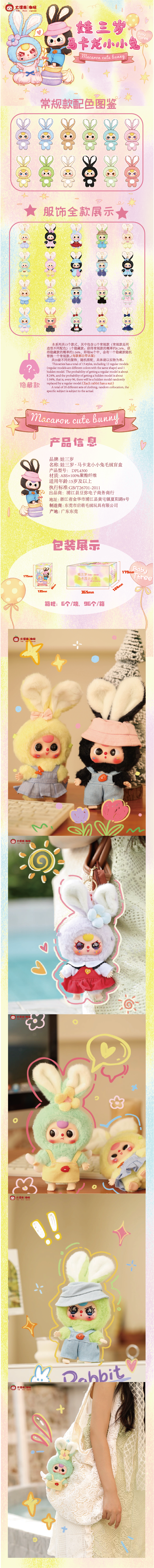 Baby Three V2 Rabbit Macaron Cute Bunny Plush Series Blind Box
